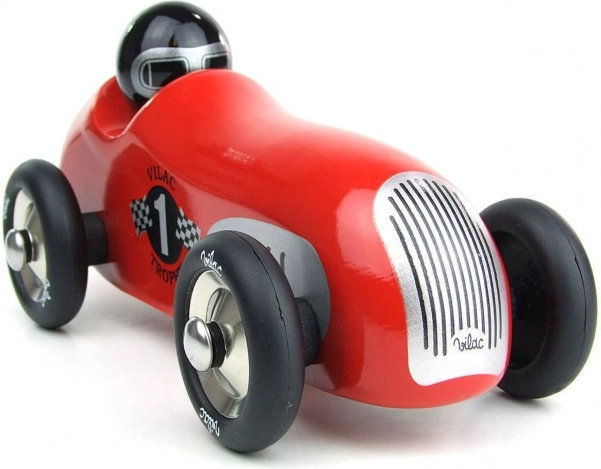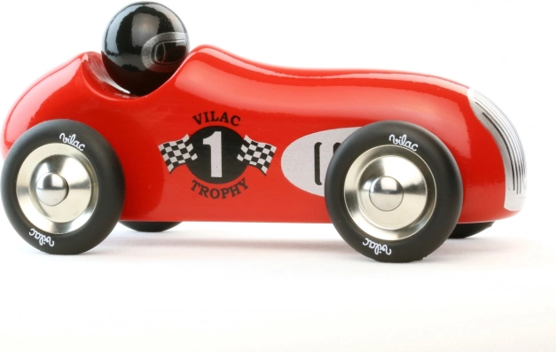Découvrez le charme de la voiture de course historique rouge de la marque Vilac. Cette voiture est fabriquée en bois laqué avec des détails métalliques et des roues en caoutchouc, assurant un mouvement fluide. Elle est conçue à la fois pour jouer et comme élément décoratif dans les intérieurs des enfants et des adultes.