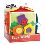 Le cube en peluche est conçu pour offrir aux enfants des expériences sensorielles riches. Chaque face du cube est équipée d'un type distinct de fermeture, ce qui motive les enfants à explorer de façon autonome et à développer des compétences motrices.
