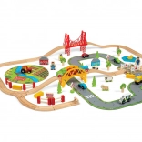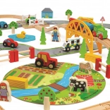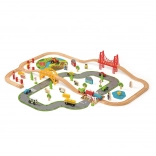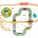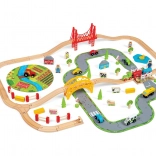 circuit de voitures de la marque Bigjigs Rail, qui combine le charme du rail et des routes dans un environnement rural.