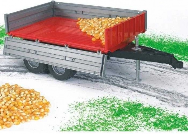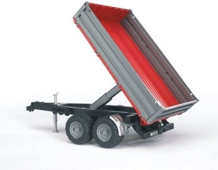 Remorque basculante rouge Bruder est une copie fidèle d'une remorque à deux essieux qui animera chaque scène de jeu. Son principal avantage est la plateforme basculante et les parois latérales et arrière ouvrantes qui permettent une manipulation facile de la charge.