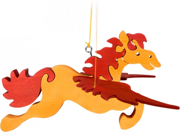 Charmante décoration en bois pour chambre d’enfant – un cheval volant qui commence à « battre des ailes » lorsqu’on tire sur la ficelle. Bois poncé à la main, conception sûre et suspension facile font de cette décoration suspendue un accessoire ravissant au-dessus du lit ou dans le coin jeu.