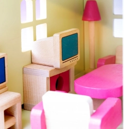 Ce set de meubles en bois pour maisons de poupées est la solution idéale pour chaque petit designer d'intérieur. Le set contient tout le nécessaire pour équiper la cuisine, le salon, la chambre à coucher, la salle de bain et même le grenier.