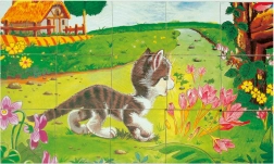 Les enfants assemblent des images d’oies près du ruisseau, de chiots dans le pré ou de porcelets près de l’étable – des couleurs vives et des illustrations tendres stimulent l’imagination et la découverte des animaux.