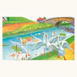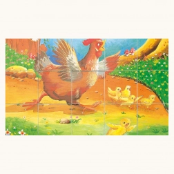Découvrez le charme intemporel des cubes en bois avec de belles scènes illustrées de la campagne. Chacune des 6 images (oie près du ruisseau, adorable chiot dans le pré, porcelets à l’étable, etc.) aide naturellement les enfants à développer leur imagination et la connaissance des animaux.
