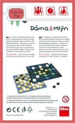 Profitez des jeux de stratégie classiques où que vous soyez. Le coffret compact de la marque Dino propose un plateau de jeu recto‑verso pour la dame et le moulin, des pions noirs et blancs communs et un emballage pratique pour le sac à dos. Amuse aussi bien les enfants que les adultes et développe la pensée logique, la tactique et la patience. Fabriqué en République tchèque, certifié Jouet sûr et de qualité.