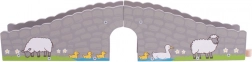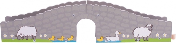 Conçu en gris, rappelant un pont en pierre avec des illustrations d'animaux de ferme pour une expérience authentique.