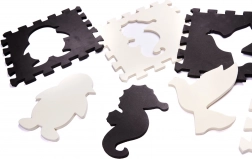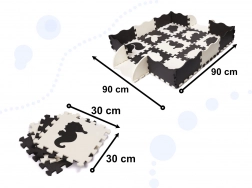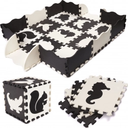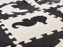 Grand puzzle en mousse en noir et blanc avec des éléments amovibles et des formes intéressantes pour garantir un excellent divertissement à l'enfant découvrant le monde. Grâce au puzzle, vous pouvez créer un espace de jeu sécurisé pour les enfants, où la mousse douce absorbe toutes les chutes.