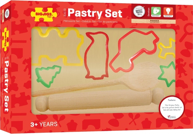 Découvrez le plaisir de pâtisser avec le set pour enfants BIGJIGS – un ensemble pratique et sûr pour les premiers pas en cuisine. Le set comprend un rouleau à pâtisserie en bois, une planche, une cuillère en bois, une spatule et 6 emporte-pièces colorés (étoile, voiture, chien, sapin de Noël, petit train, pingouin). Ce set de 10 pièces stimule la créativité et la motricité fine, convient dès 3 ans et respecte les normes de sécurité européennes en vigueur.