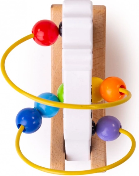 Grâce à sa base en bois robuste et à ses bords lisses, le jouet est résistant et agréable au toucher. Les perles colorées stimulent les sens et favorisent la reconnaissance des couleurs. Idéal pour la chambre d’enfant comme pour les déplacements.