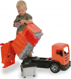 Ce grand camion-benne orange, inspiré du véritable modèle MERCEDES ACTROS, apporte des expériences authentiques dans la chambre des enfants. Deux mécanismes de levage indépendants et les bacs fournis permettent d’imiter la véritable collecte et le vidage des déchets. La conception durable en plastique haut de gamme répond aux normes européennes et supporte une utilisation intensive.