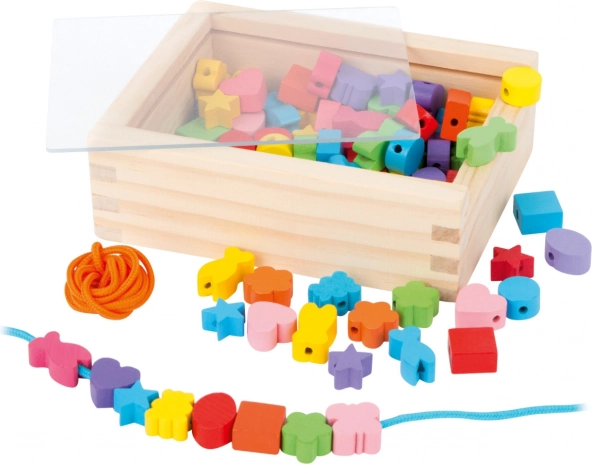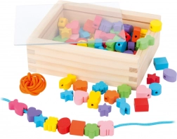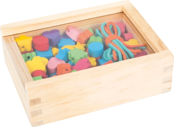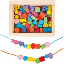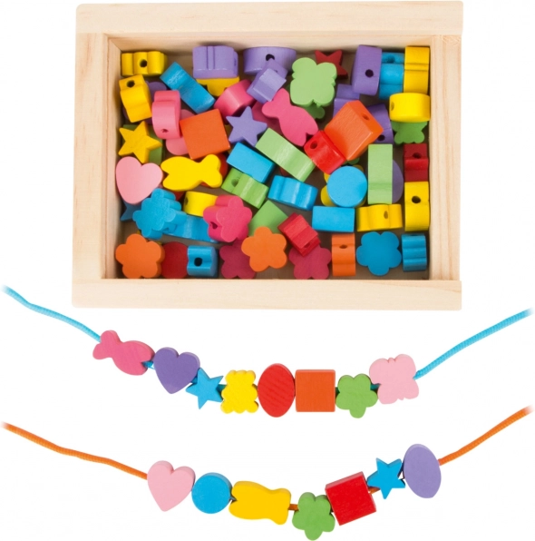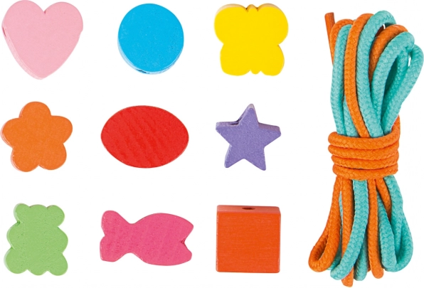 Les petits créateurs peuvent s'amuser pendant des heures avec ce kit en bois. La boîte contient 81 perles colorées et 2 cordons, permettant aux enfants de créer une variété de bijoux selon leurs envies.