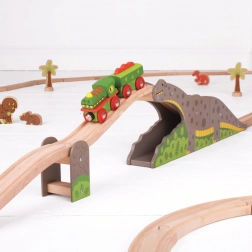 Offrez aux enfants un élément original pour leur circuit – un pont dinosaure qui transforme chaque trajet en aventure. La structure en bois robuste à motif dinosaure permet aux trains de passer sur le dos et à travers le tunnel, augmentant la variété des tracés et favorisant le jeu créatif.