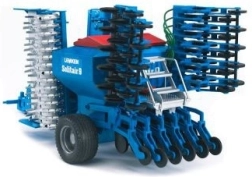 Les disques de semis mobiles et l’attelage pivotant garantissent une excellente maniabilité et une compatibilité avec les tracteurs Bruder 20xx, 21xx et 30xx.