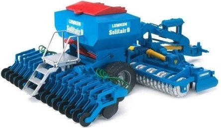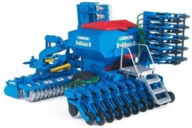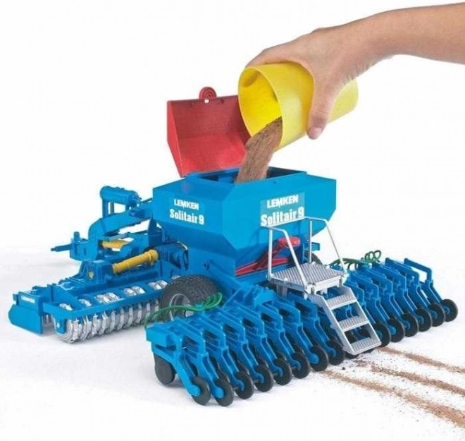 Modèle réaliste du semoir LEMKEN Solitair 9 à l’échelle 1:16 de la marque Bruder, offrant de nombreux détails fonctionnels pour un jeu authentique. Il possède un réservoir à graines remplissable, un bras et des marches rabattables, des disques mobiles et un attelage pivotant à 180°. Il est compatible avec les tracteurs Bruder des séries 20xx, 21xx et 30xx et est fabriqué en plastique de qualité en Allemagne.