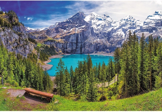 Le puzzle sur le thème du Lac Oeschinen dans les Alpes offre non seulement du divertissement, mais aussi aide à la détente et au développement de la concentration. Lors de l'assemblage, vous exercez votre patience, votre attention et stimulez la pensée logique. Le puzzle est idéal pour des moments partagés avec la famille et les amis.