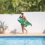 Le jouet est léger et facile à transporter – une fois dégonflé, il tient dans un sac à dos ou un sac de plage. Le produit est conforme aux normes européennes et livré avec une rustine de réparation pour régler rapidement les petits incidents.