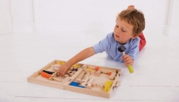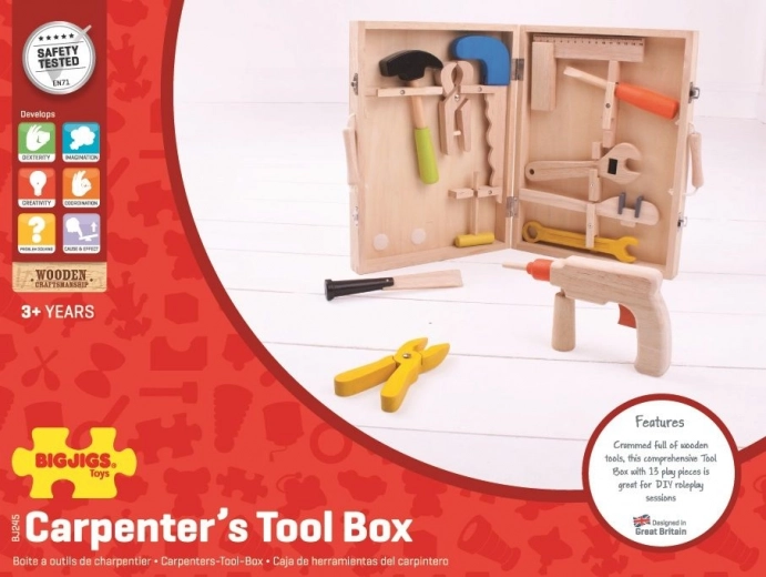 Superbe mallette en bois avec outils pour tous les jeunes bricoleurs qui souhaitent développer leurs compétences manuelles. Elle contient un marteau, une pince, une perceuse et des clés pour écrous, le tout fabriqué avec des matériaux de qualité.