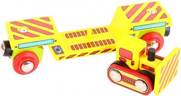 Un ensemble ludique pour circuits de trains en bois comprenant un wagon lourd avec attelages magnétiques, un bulldozer amovible et deux rails. Compatibilité avec la plupart des circuits de trains en bois, matériaux naturels de qualité et stimulation de l’imagination et de la motricité fine en font un excellent complément à toute voie ferrée.
