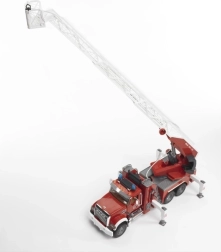 Le modèle séduit par ses fonctions bien pensées : cabine ouvrante, rétroviseurs extérieurs rabattables, pare-brise en polycarbonate résistant et possibilité de regarder sous le capot le moteur. Les pneus souples profilés maîtrisent tous les terrains et le panier de l’échelle est équipé d’un support de tuyau avec enroulement via une manivelle latérale. La compatibilité avec les figurines Bworld élargit les possibilités de jeu.
