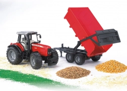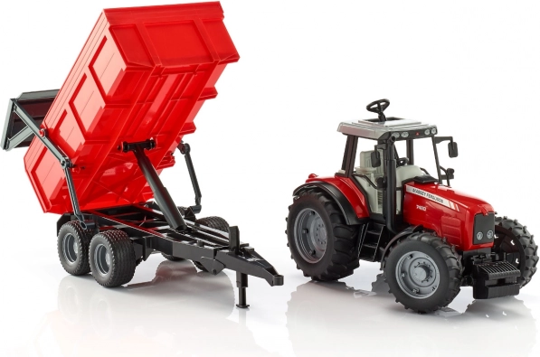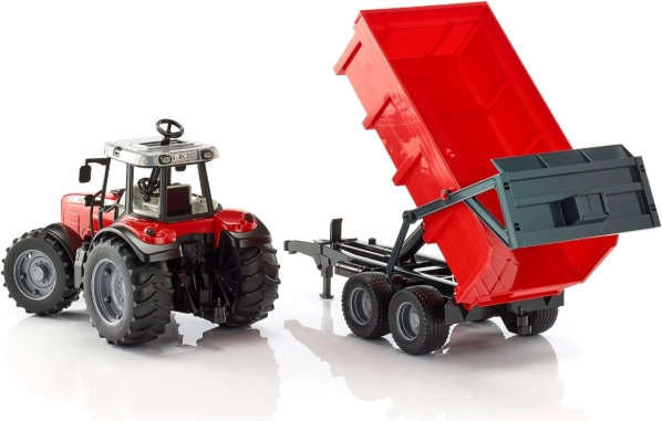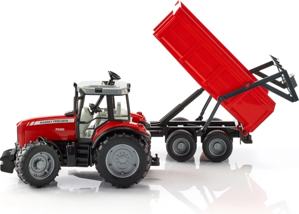 Tracteur MASSEY FERGUSON finement détaillé avec remorque basculante à l’échelle 1:16, pour ravir petits fermiers et collectionneurs. Il offre un capot et des portes ouvrants, une direction fonctionnelle avec volant rallongé, ainsi que des pneus profilés résistants pour la conduite tout-terrain. La remorque est une benne entièrement fonctionnelle avec béquille de stabilisation. Fabriqué en Allemagne en plastique ABS de qualité.