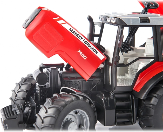 Profitez d’un jeu de ferme réaliste avec le tracteur MASSEY FERGUSON 7480 et sa benne basculante. Le modèle à l’échelle 1:16 séduit par sa finition soignée, sa direction fonctionnelle commandée par un volant rallongé via le toit de la cabine et ses éléments ouvrants, permettant de voir sous le capot et dans la cabine.