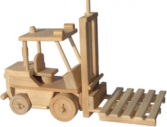 Ce chariot élévateur en bois de hêtre de haute qualité ravira les petits bâtisseurs par sa construction sûre et robuste. Il possède une surface naturelle cirée et polie sans produits chimiques, des bords arrondis et des roues mobiles. Idéal pour les enfants dès 3 ans, même dans le bac à sable.