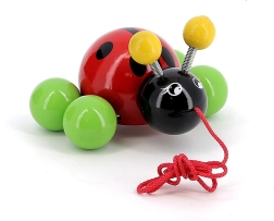 Cette coccinelle classique à tirer en bois laqué séduit par son design coloré, sa surface lisse et ses antennes souples qui se balancent gaiement lorsqu’on la tire. Grâce aux roues arrondies, la conduite est fluide et les enfants entraînent naturellement la coordination des pas et la confiance en marche.