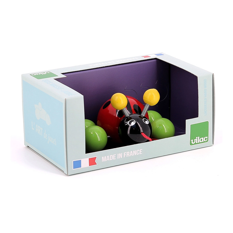 Adorable coccinelle à tirer en bois VILAC en bois massif laqué qui ravira chaque tout-petit. En mouvement, ses antennes montées sur ressort se balancent joyeusement, aidant les enfants à développer l’équilibre, la coordination des mouvements et à encourager le jeu actif. Une fabrication de qualité et une production en France garantissent un jouet sûr et durable pour tous les jours.