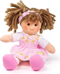 La poupée en tissu Rose se distingue par sa jolie robe rose ornée de broderies florales et d’une bordure en dentelle. Son corps doux et sûr reconnecte les enfants au jeu traditionnel et leur apprend le soin et la responsabilité. Rose possède des vêtements interchangeables, ce qui permet la personnalisation et encourage la créativité des enfants.