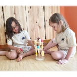 Le stand est facilement transportable grâce à la boule robuste au sommet et, grâce à l’utilisation de bois massif et de contreplaqué épais, il est très durable. Son design égaye toute chambre d’enfant et constitue un complément idéal pour jouer à la maison ou en combinaison avec d’autres jouets.