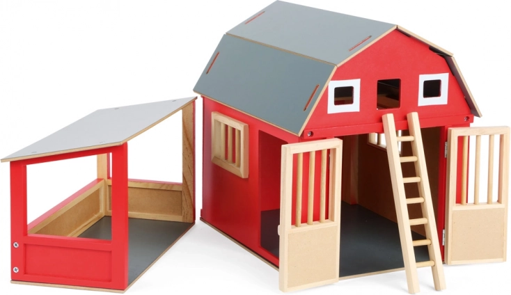 Grande grange en bois inspirée des écuries américaines offrant une hauteur et un espace suffisants pour de grandes figurines, des panneaux de toit rabattables pour un accès facile, ainsi que des él... Voir plus