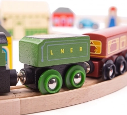 Le Flying Scotsman est l’un des trains les plus célèbres de son époque et, grâce à ce circuit en bois, les enfants peuvent revivre ses trajets légendaires. Le set comprend un train magnifiquement réalisé qui vous emmènera dans une balade nostalgique à travers viaducs et paysages naturels. Des gares rétro, des maisons et des voitures bordant la voie en font également partie.