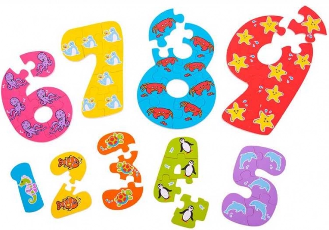 - Chiffres 1–9 sous forme de puzzles – chaque chiffre est un mini-puzzle de 1 à 9 pièces.