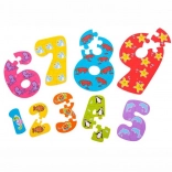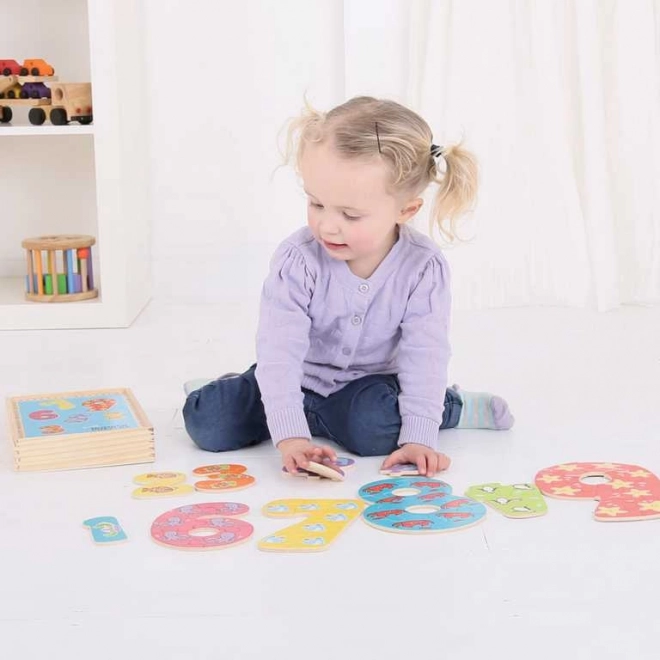 Ce set de puzzles éducatifs apprend aux enfants à reconnaître les chiffres et à leur associer des quantités. Chaque chiffre se compose d’un nombre correspondant de pièces (par ex. le chiffre 4 a quatre pièces) avec un joyeux motif animalier, ce qui favorise un apprentissage naturel et le plaisir d’assembler.