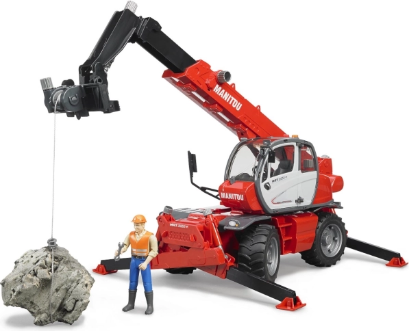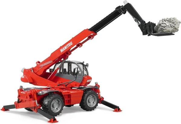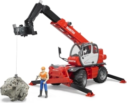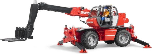 Un modèle détaillé du chariot télescopique MANITOU MRT 2150 de la marque Bruder qui ravira les petits bâtisseurs comme les collectionneurs. Il offre une cabine rotative à 360°, une direction à quatre roues pour un petit rayon de braquage et des outils interchangeables (godet, fourches, panier pour palettes). La stabilité est assurée par quatre stabilisateurs télescopiques. Finition de qualité en plastique résistant, fabriqué en Allemagne.