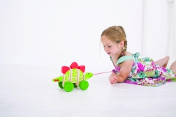 Ce dinosaure à tirer en bois de qualité est un excellent compagnon pour les enfants dès 12 mois. Grâce à sa construction robuste et à ses bords lisses, il est sûr pour jouer, tandis que ses parties mobiles et sa ficelle à tirer soutiennent le développement naturel de la coordination mains-pieds.