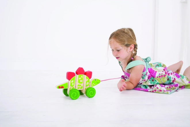 Adorable dinosaure à tirer en forme de stégosaure de Bigjigs Baby, qui développe la motricité globale, la dextérité et la confiance en soi lors des premiers pas. Jouet en bois avec roues colorées et articulations mobiles, pour beaucoup de plaisir à la maison comme en promenade.