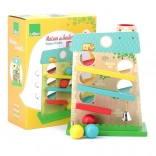 La maison en cascade en bois VILAC enchante les tout‑petits par la course amusante des balles et son design séduisant. Elle propose 3 rampes de chaque côté, le long desquelles les balles en bois dévalent de haut en bas et, à l’arrivée, une clochette en métal tinte. Ce jouet aux couleurs pastel développe l’habileté et la pensée logique et offre des heures de jeu joyeux.