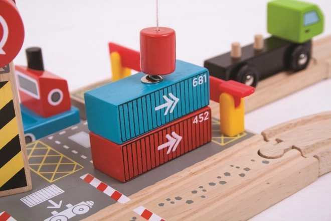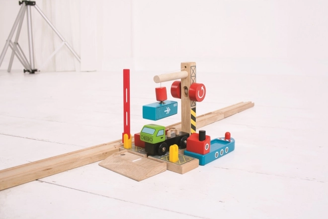 Découvrez un superbe terminal en bois avec une grue magnétique fonctionnelle qui plonge les enfants dans l’univers des ports et du rail. Le set comprend un camion en bois avec conteneurs et une grue robuste pour un chargement et déchargement aisés. L’ensemble est sûr, durable et invite au jeu libre.