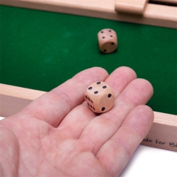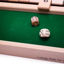 Découvrez un divertissement familial intemporel avec Shut the Box. Le but est, après un lancer de deux dés, d’abaisser un ou deux clapets dont la somme correspond au résultat du lancer. On joue jusqu’à ce qu’il ne soit plus possible d’abaisser d’autres nombres – la somme restante est inscrite comme points de pénalité. Gagne le joueur avec le score le plus bas.