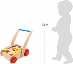 Découvrez l’outil idéal pour les premiers pas : un chariot de marche en bois avec un plateau rempli de blocs colorés. La construction robuste en bois massif et contreplaqué offre de la stabilité, tandis que les blocs en hêtre de différentes formes (env. 5–10 cm) invitent au jeu créatif. Grâce à une poignée confortable à 39 cm de hauteur, les enfants se sentent confiants et en sécurité.