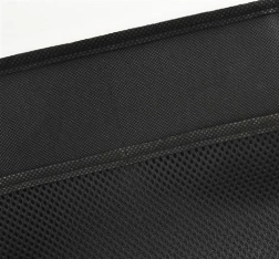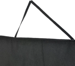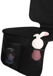 Le tapis s'attache facilement grâce à des sangles élastiques qui se fixent à l'appui-tête. Il comprend également deux poches en filet qui facilitent le rangement de petits objets comme des jouets ou des bouteilles. Ces poches sont pratiques et permettent un accès rapide aux objets stockés.