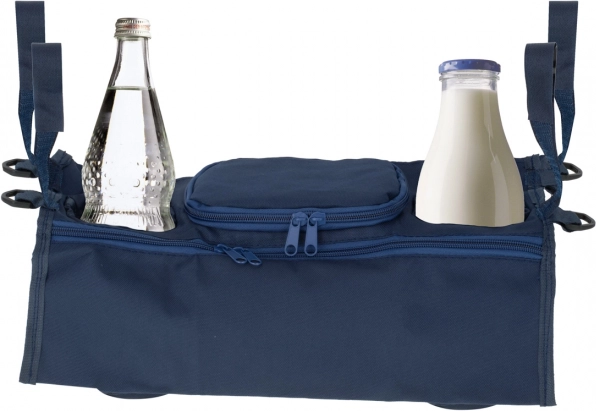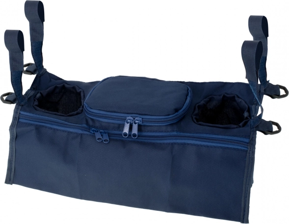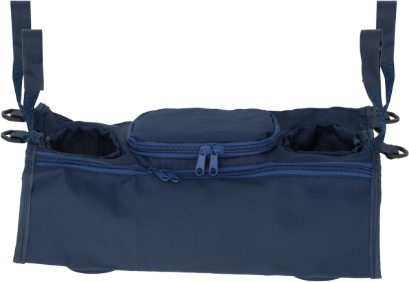 Organiseur de poussette pratique avec deux porte-bouteilles, une grande poche zippée et une petite poche zippée. Se fixe facilement à l’aide de bandes auto-agrippantes et garde tous les indispensables à portée de main – des couches et lingettes aux jouets, au téléphone et au biberon ou à la boisson.