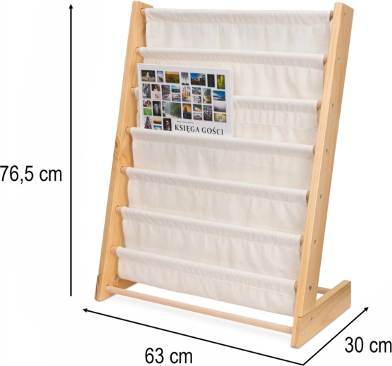 L’étagère est fabriquée en bois naturel et en toile de coton de qualité, avec des bords lisses et une structure stable pour une sécurité maximale. Le design intemporel associant le bois et le blanc s’harmonise avec tous les intérieurs et favorise de saines habitudes de lecture ainsi que l’apprentissage de l’ordre.