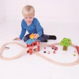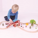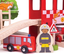 Ce circuit de train en bois sur le thème de la caserne transforme n’importe quelle chambre en centre de secours. Les enfants peuvent traverser le tunnel de la caserne, faire la course avec le camion de pompiers, envoyer le train de secours avec wagons amovibles et aider les pompiers avec l’échelle ou la borne d’incendie. Grâce aux nombreux détails et à la robustesse de l’ensemble, le jouet stimule parfaitement l’imagination et apprend aux enfants à résoudre des situations.