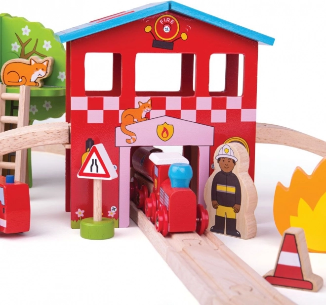 Le set comprend une caserne, un train avec wagons, un camion de pompiers, des figurines et de nombreux accessoires. Idéal pour créer des missions de sauvetage palpitantes et jouer pendant des heures.