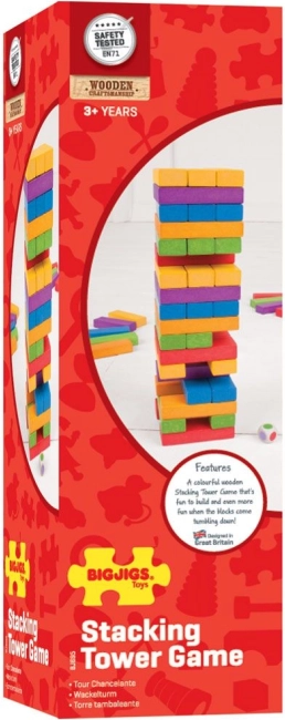Un jeu amusant et palpitant pour petits et grands, où vous devez retirer des pièces en bois colorées de la tour selon le lancer de dé – le tout sans faire tomber la tour. Cette tour en bois colorée développe la patience, la motricité fine et la coordination œil–main, tout en offrant des heures de plaisir en famille.