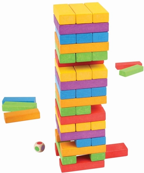 Un jeu de construction et d’adresse qui captive toute la famille. Lancez le dé coloré, retirez la pièce correspondante et placez-la au sommet – la tour monte et la tension aussi ! Grâce à sa fabrication en bois de qualité et à ses couleurs intenses, le jeu est durable, sûr et agréable à regarder.