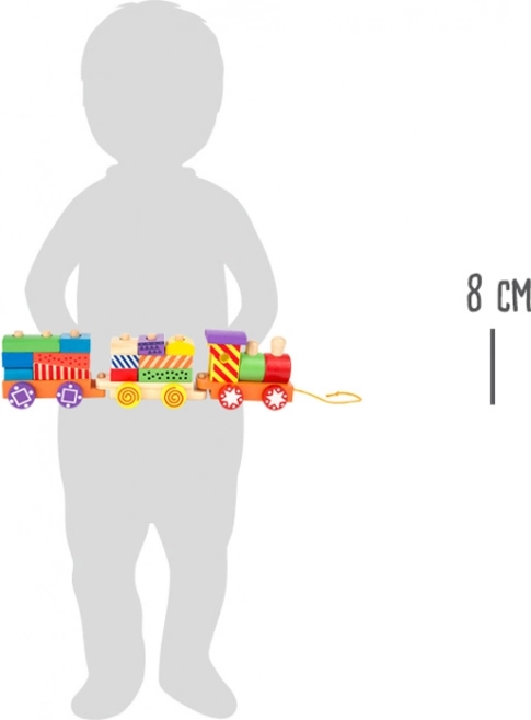 Un amusant petit train à tirer pour les tout-petits qui développe la motricité, la coordination et l’imagination. Grâce aux blocs en bois colorés, il est facile de modifier l’apparence de la locomotive et des deux wagons, que l’on peut raccorder et tirer à l’aide d’une corde. Des couleurs et des motifs gais invitent au jeu et à l’apprentissage.