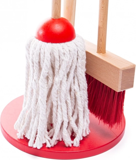 Compact set de ménage en bois de Bigjigs Toys offrant aux enfants un amusement réaliste et un apprentissage en même temps. Comprend un balai-serpillère, un balai, une pelle et une brosse, le tout rangé sur un support en bois pour un stockage facile. Idéal pour développer la motricité fine et le jeu de rôle, fabriqué avec des matériaux de qualité et sûrs. Idéal à partir de 3 ans.